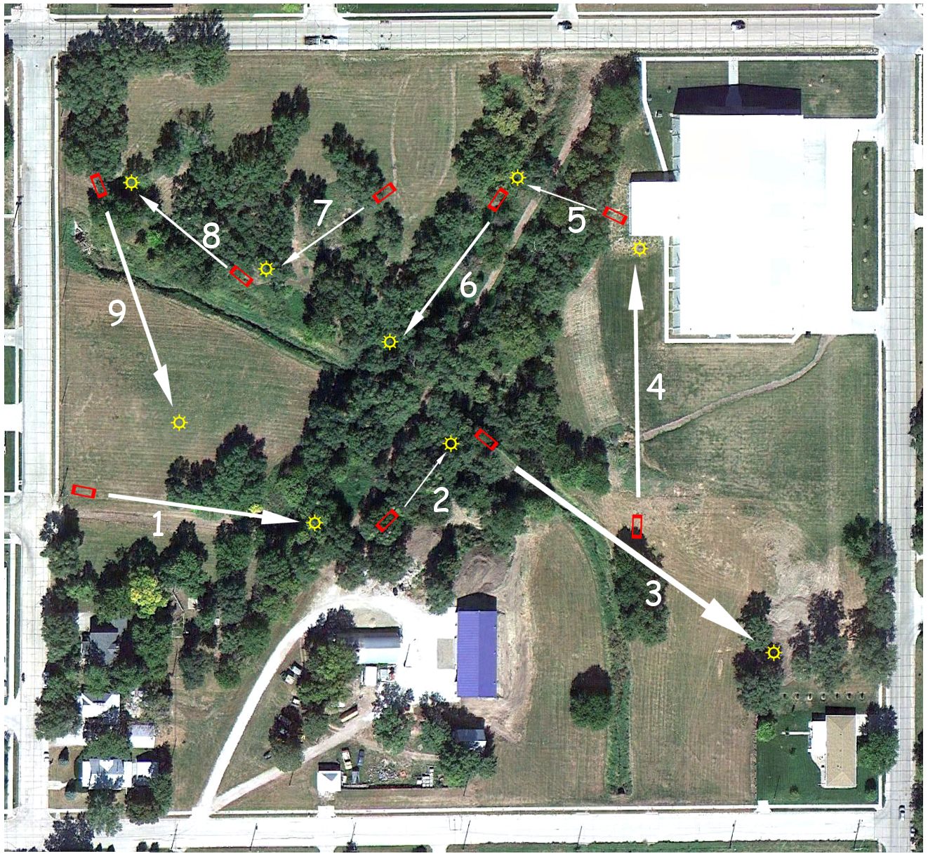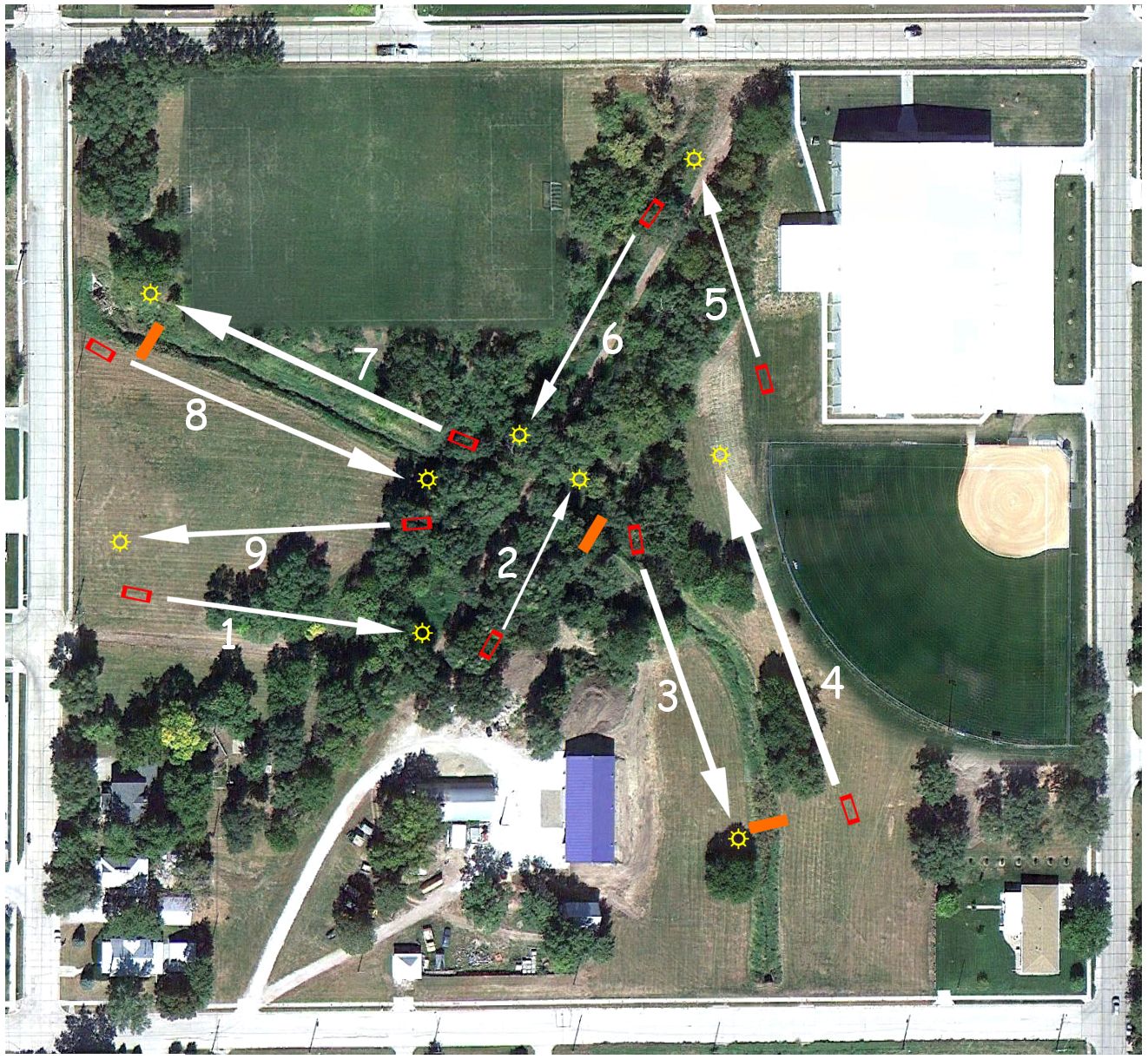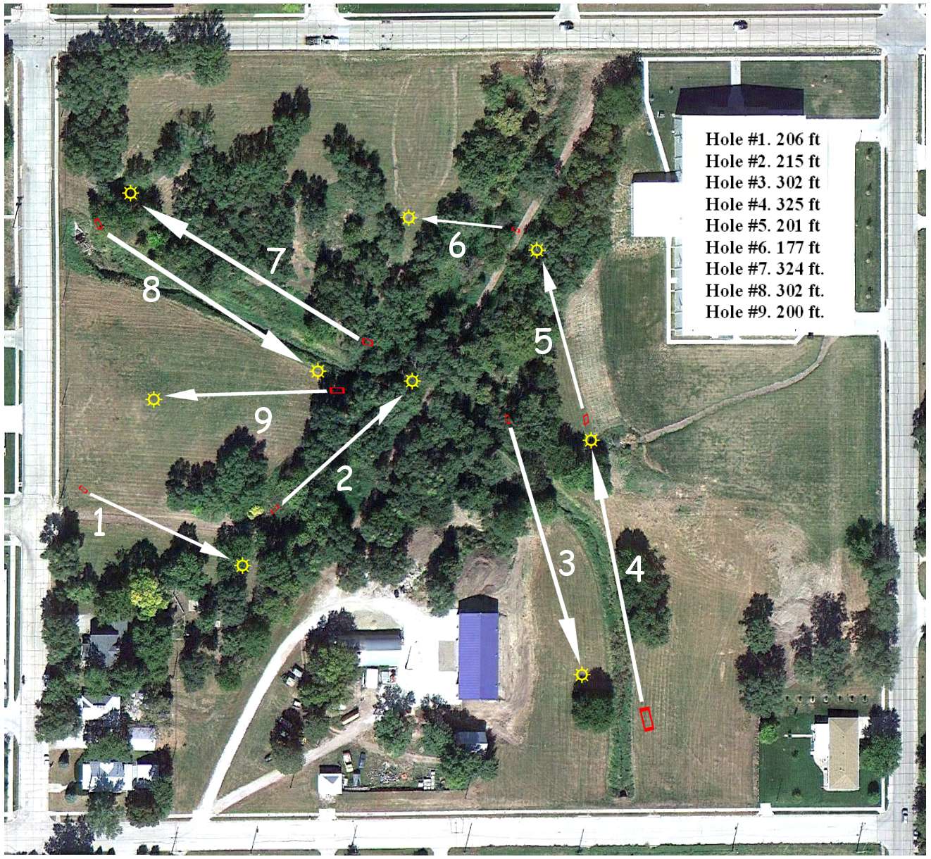 3A looks pretty good, descent mix of long and short. #4 looks really close to having discs go over the fence. 7 & 8 look close to having the players getting in each other's fairway which is only a problem with multiple groups on the course at the same time. If people will park cars closest to tee 2 renumber it to 1. Consider the number preferred flights routes such as hyzer vs anhyzer, and try to add some thumber and roller opportunities. Any room for a message board and practice basket? ... You're doing really good work here, thanks for the opportunity for us to chime in.